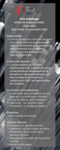 Appel de candidatures pour le Prix hommage 2022 du COPL